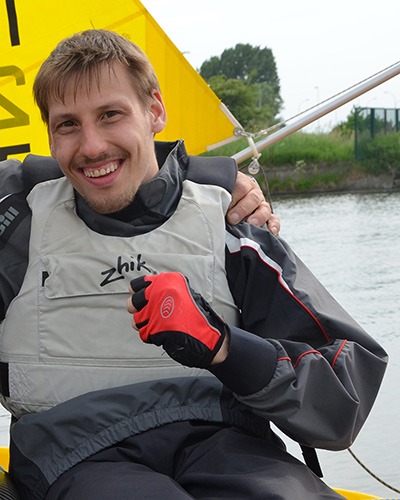 J’organise des camps depuis plusieurs années, notamment avec Sport Handicap Suisse (PluSport) et suis l’un des membres fondateurs de Sailability.ch. Depuis 2010, je travaille pour l’association en tant que moniteur de voile. Je suis moniteur de sport pour personnes en situation de handicap et ai suivi une formation J&S (Jeunesse et Sport) de moniteur de voile.